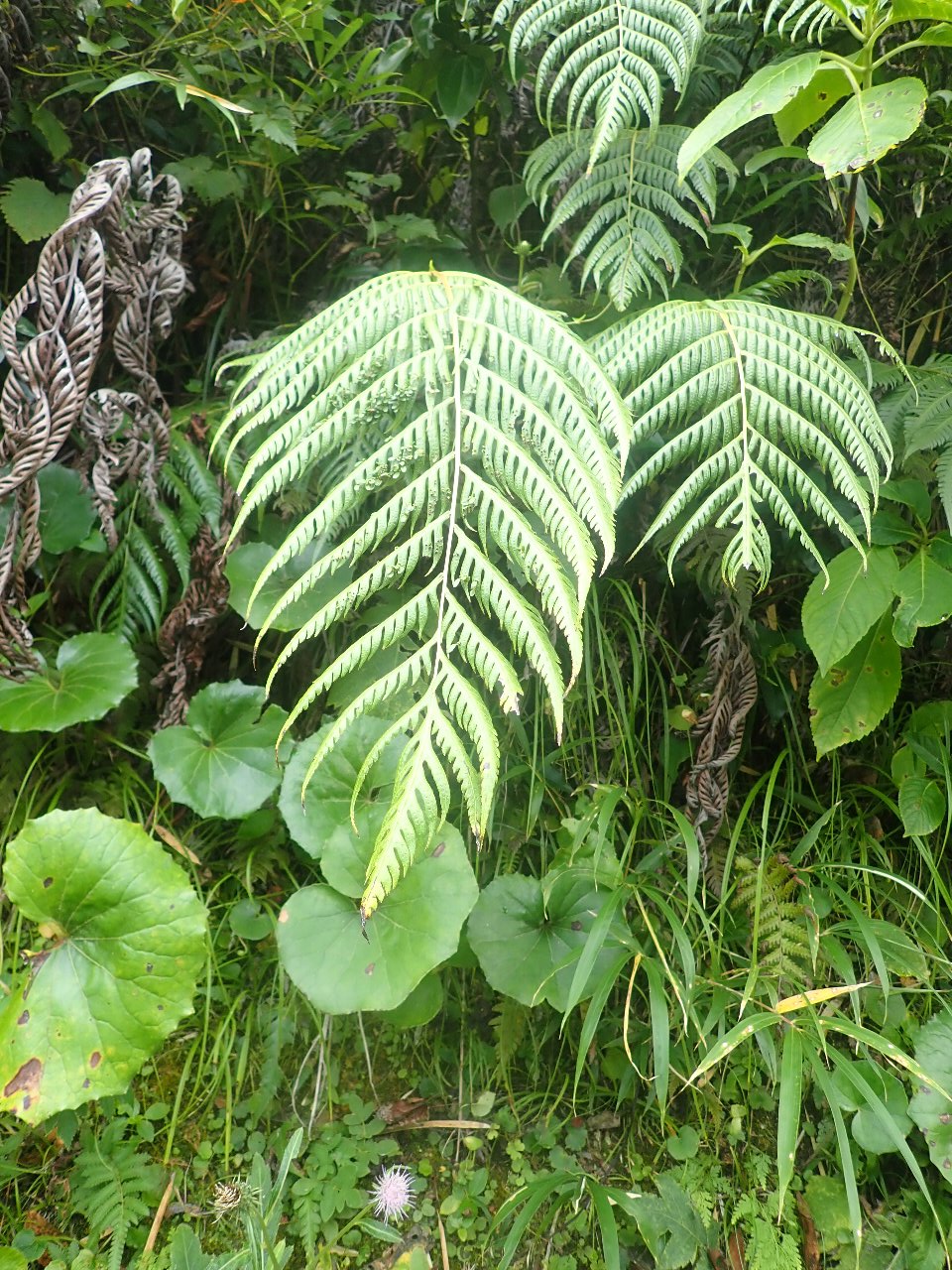 | こんなところに来てまでマルバツユクサって。 | センニンソウは花盛りだけとちょっと立派。 | サトイモは栽培種かな。 | |